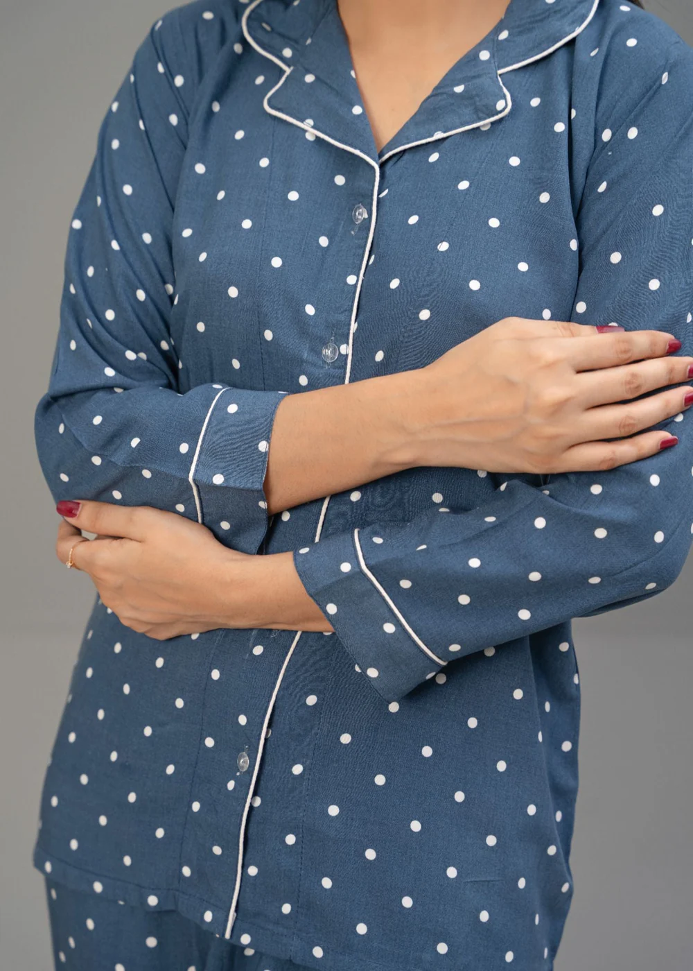 Coal Bones Women’s Long Sleeve Nightwear Pajama Set-Steel Blu